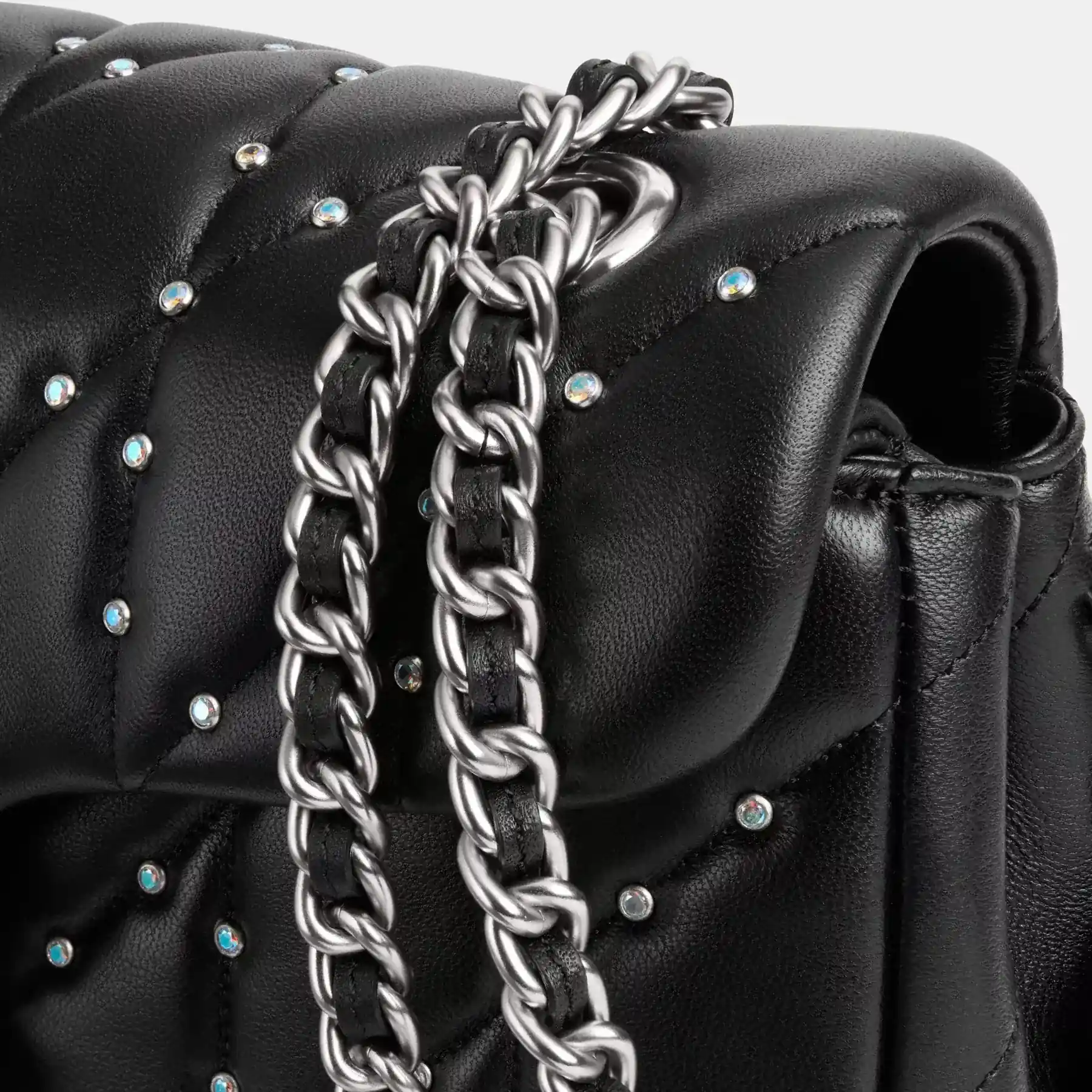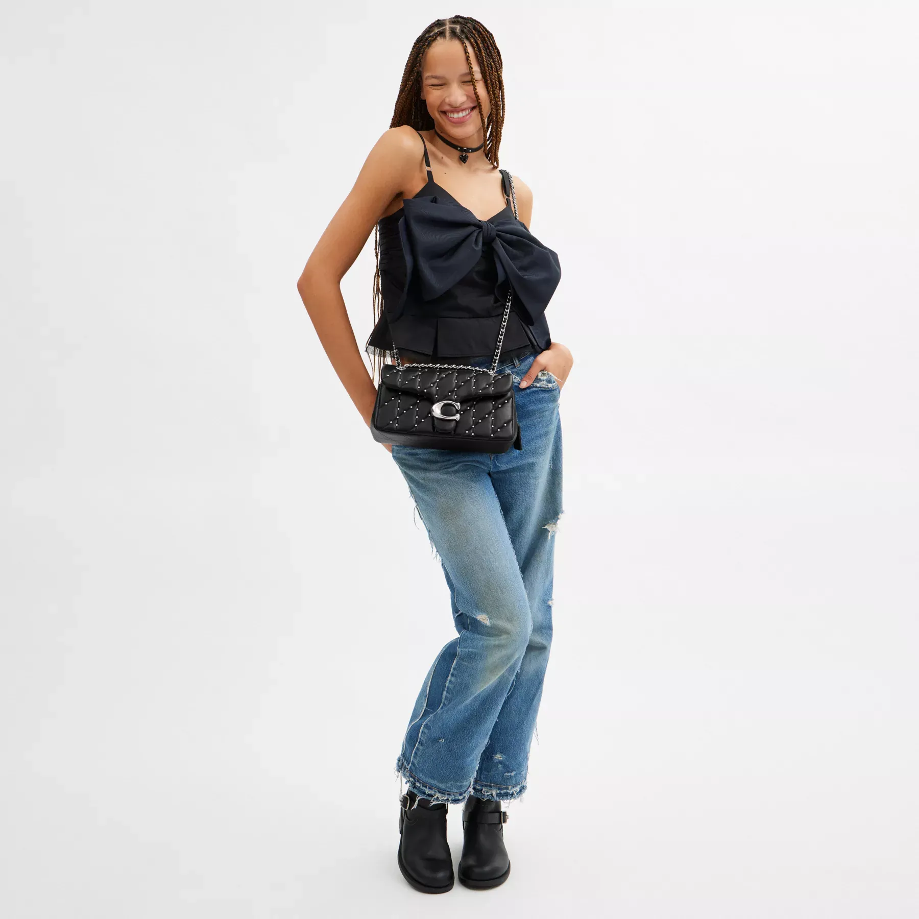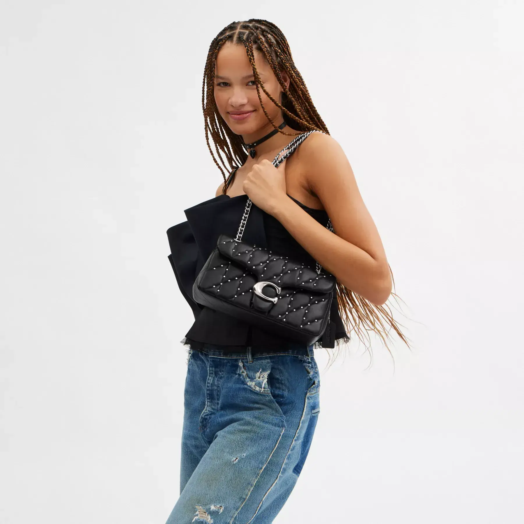 Tabby Shoulder Bag 26 With Pillow Quilting And Crystal Rivets Black