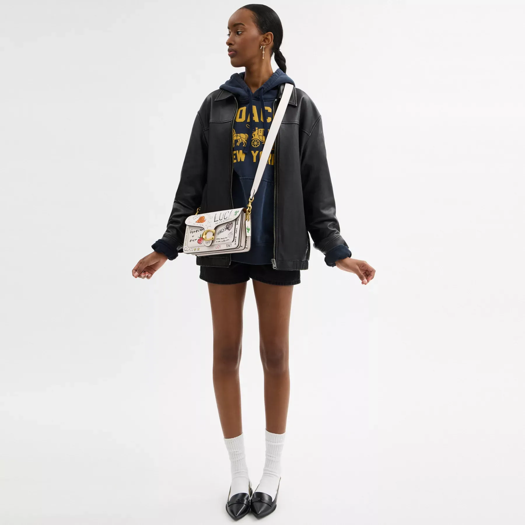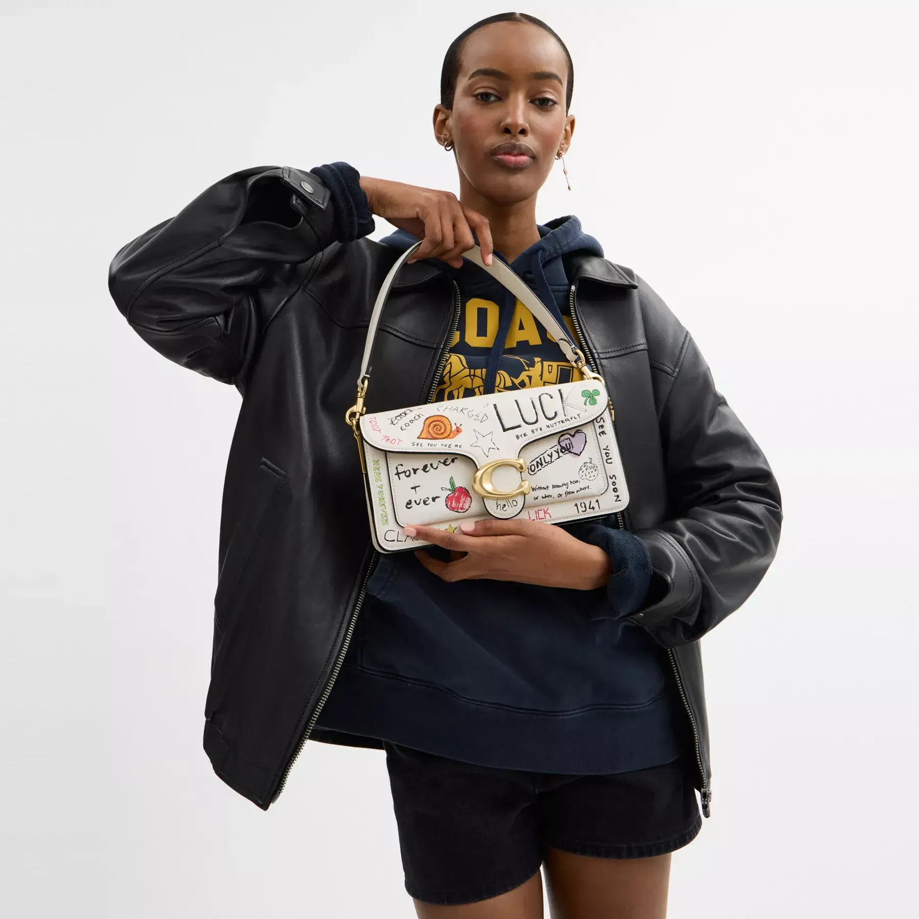 A modern take on an archival 1970s Coach design, our structured Tabby shoulder bag is crafted of buttery soft glovetanned leather featuring our Coach Sketch print, a playful doodle motif of whimsical drawings and phrases inspired by artistic notebook scribbling. Finished with our Signature hardware for an iconic touch, the compact 26 features two detachable straps to carry by hand, style as a short shoulder bag or wear crossbody.