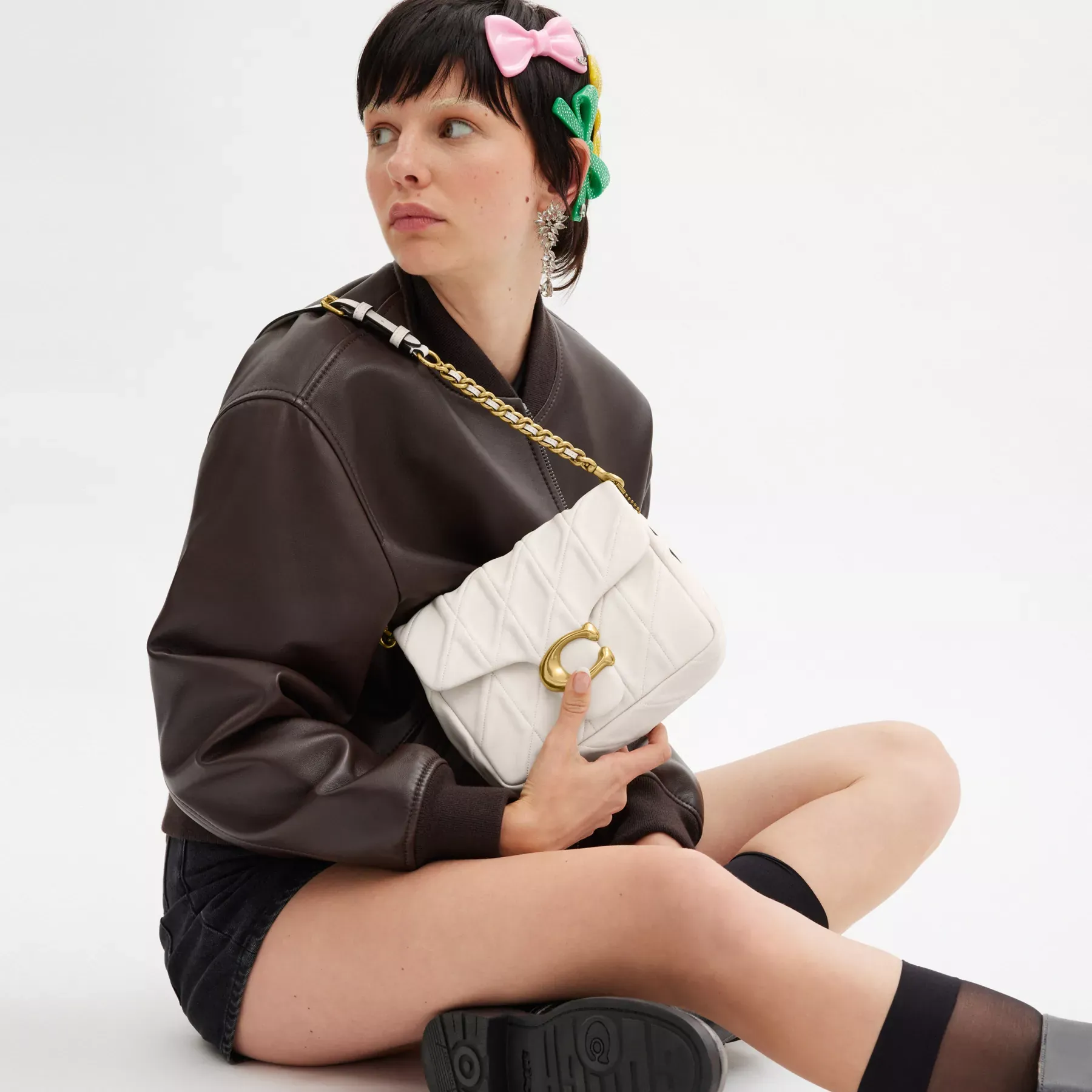 Inspired by the dynamic energy of our hometown New York City, the Times Square Tabby is a modern take on an archival 1970s Coach design. Crafted of quilted washed nappa leather and finished with our Signature hardware for an iconic touch, the structured silhouette features versatile styling options with an adjustable leather and chain strap to wear short or long on the shoulder and an adjustable leather crossbody strap.
