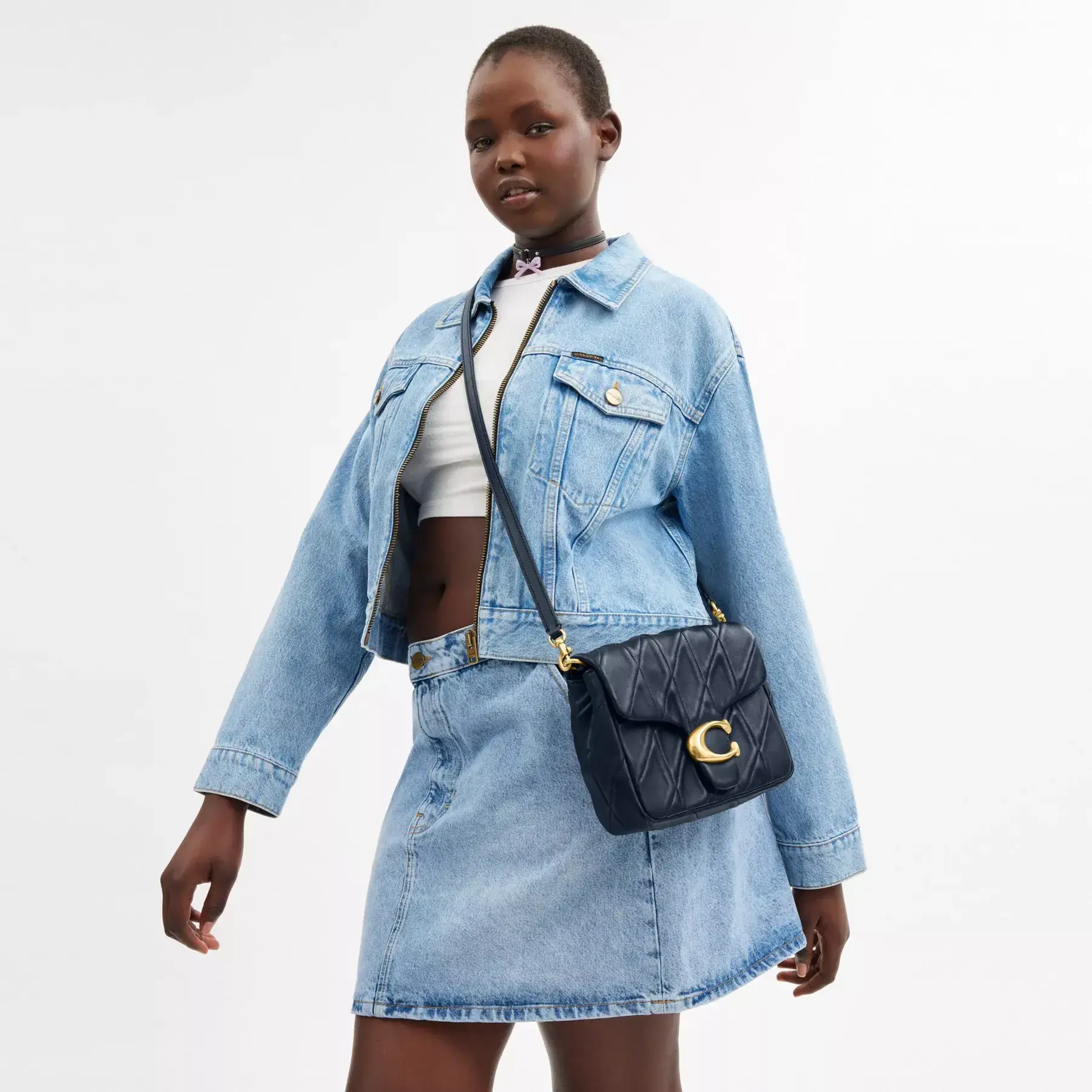 Inspired by the dynamic energy of our hometown New York City, the Times Square Tabby is a modern take on an archival 1970s Coach design. Crafted of quilted washed nappa leather and finished with our Signature hardware for an iconic touch, the structured silhouette features versatile styling options with an adjustable leather and chain strap to wear short or long on the shoulder and an adjustable leather crossbody strap.