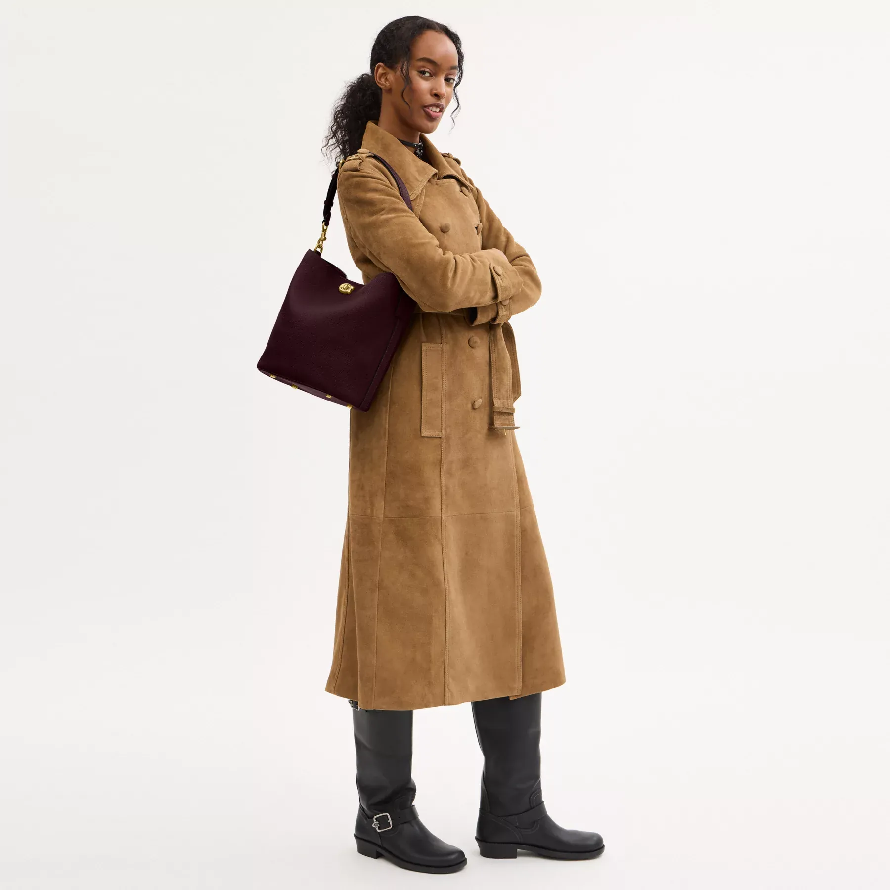 Not too big, not too small, Willow is the perfect go-anywhere shoulder bag with space for all of your day-to-day essentials. Crafted of polished pebble leather, the generously sized Soft Bucket Bag has an organized interior with one zip compartment, two open compartments and a pocket for small necessities. The streamlined bucket style secures with our Signature turnlock closure and can be carried by hand, on the shoulder or crossbody.